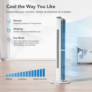 ULTTY Tower Fan for Bedroom, 30ft/s Velocity Quiet Floor Fan, 60° Oscillating Fans for Indoors with 6 Speeds, 4 Modes, 15H Timer, Standing Fans, 40 inch Bladeless Fan for Home, Living Room, White