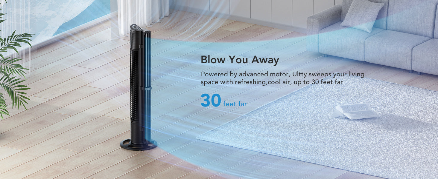 U ULTTY Tower Fan for Bedroom30ft/s Velocity Quiet Floor Fan, 60° Oscillating Fans for Indoors with 6 Speeds, 4 Modes, 15H Timer, Standing Fans, 40 inch Bladeless Fan for Home, Living Room, Black
