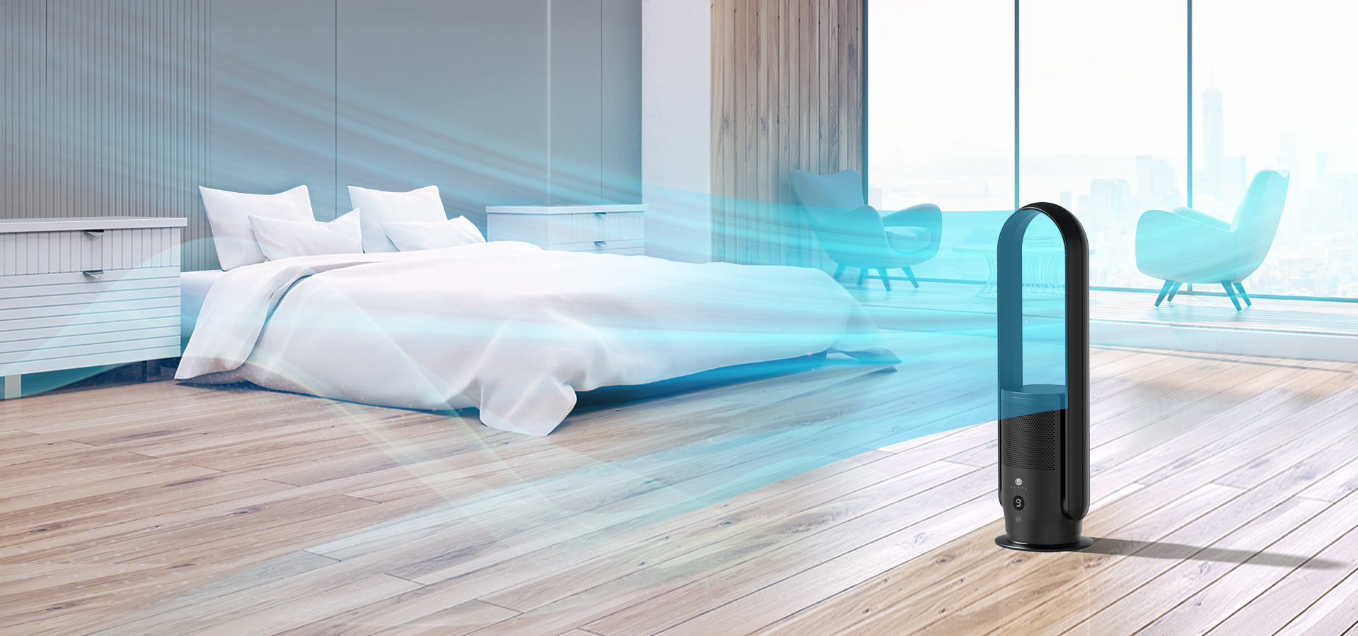 - Bladeless Fan Technology: Preventing children and pets from fast-spinning blades accidents. Created super smooth breeze, provided ultra comfortable cooling and also friendly for babies. Really easy to clean.