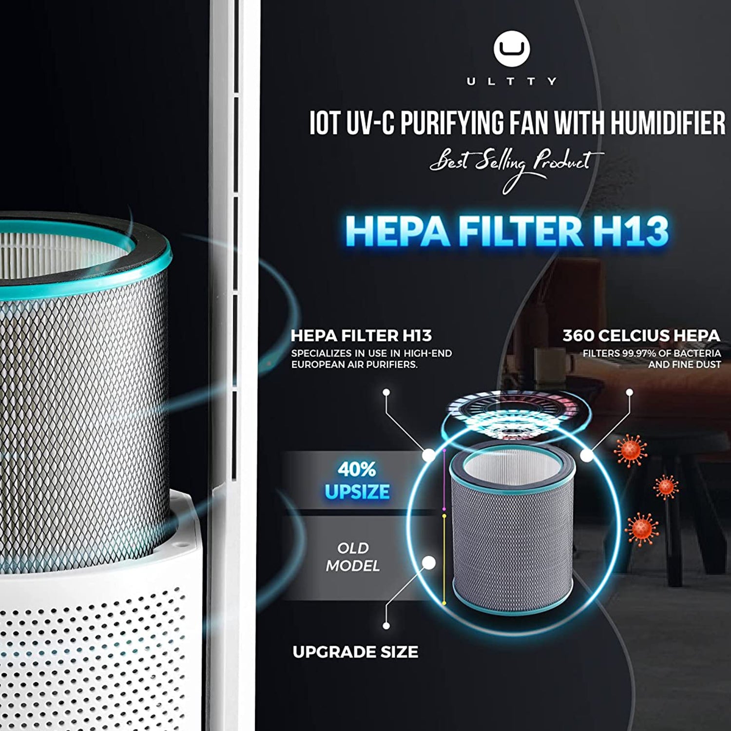 The Ultty Bladeless Fan not only provides cooling relief during the summer months, but also purifies the air, promoting a healthier lifestyle.