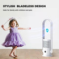 - Wider Air Flow Circulation: This oscillating Bladeless tower fan effectively distributes ample air circulation to bring airflow to your room faster thanks to its wide 90° angle oscillation and air outlet 30°. Offers a continuous, refreshing breeze that keeps everyone in the room comfortable on hot days.