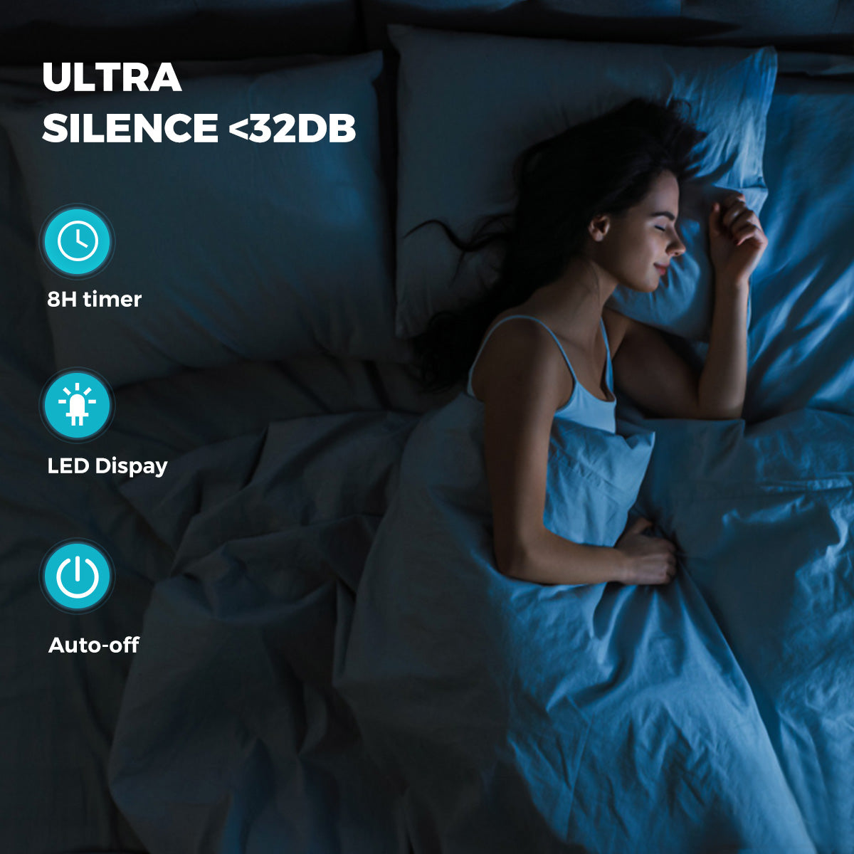 - Enjoy all-day serenity and comfort. Along with display auto off, 8h timer, and soothing airflow, you can always get a restful sleep whenever you need it.
