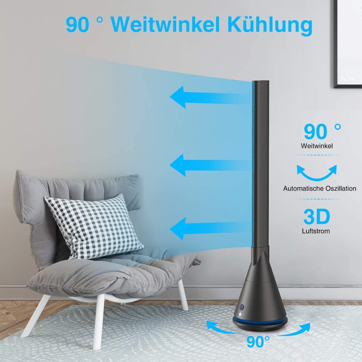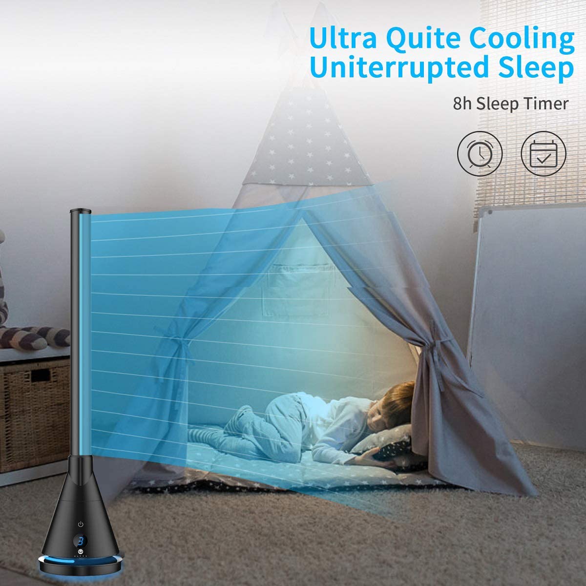 - ROTORLESS FAN - U ULTTY SKJ-CR012 tower fan uses bladeless fan technology technology, turbulence generates diffuse, widely distributed airflows. Together with unique air channel design, 90 cm long air outlet and an automatic oscillation of 80°, 8H timer.