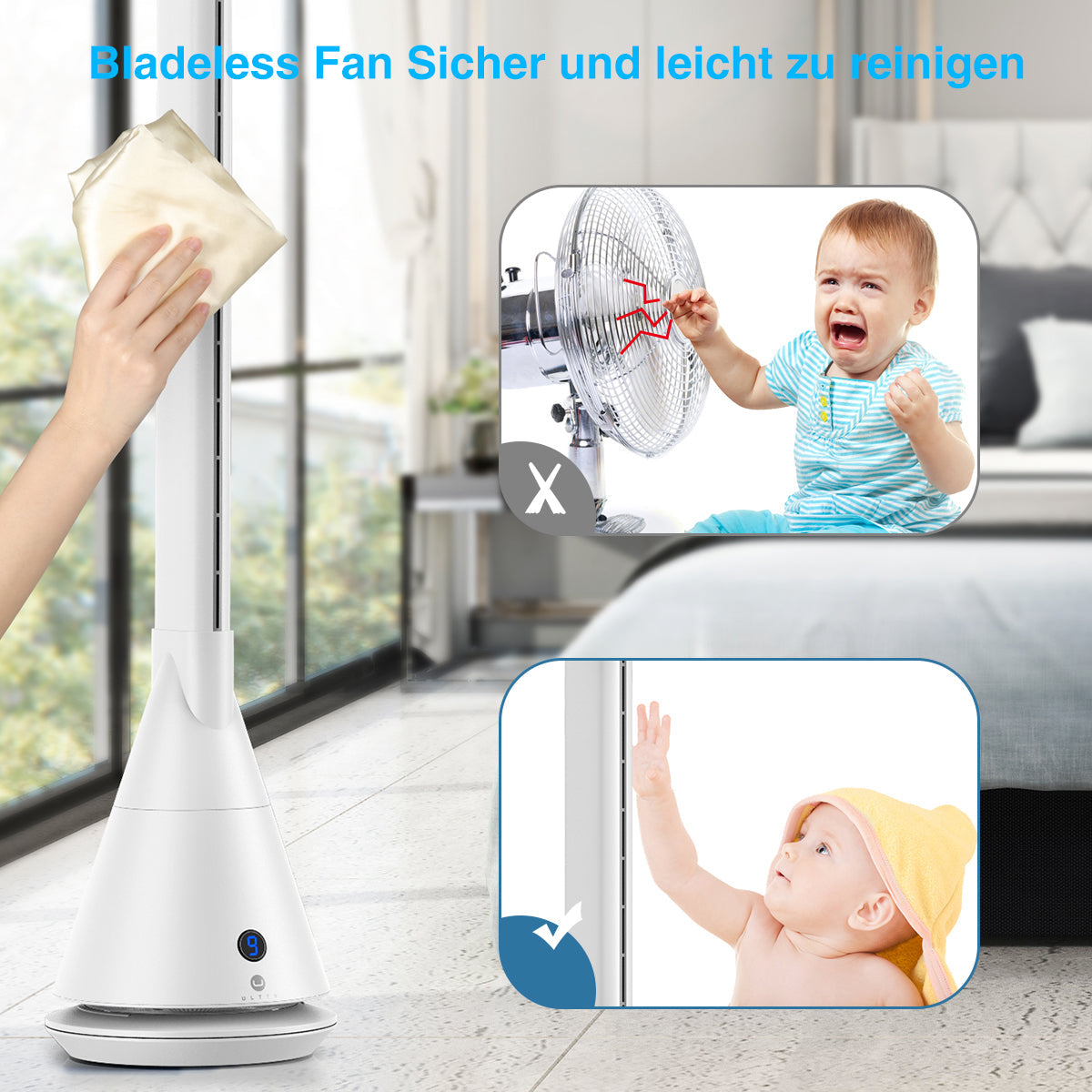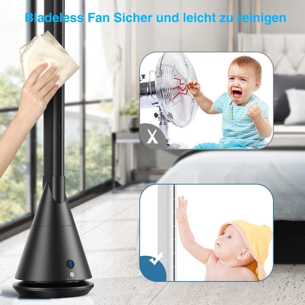 - Safe for pets children: Ultty fan has a solid triangular base that is difficult to tip. If the fan accidentally falls down, it will automatically shut off for added safety. Bladeless fan design that makes it safe for children and pets.