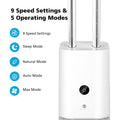 - Smart Tower Fan: 3 modes & 9-speed settings, Lower Noise(sleep mode), 8-hour Timer, air outlet 30° adjustable, 90° wide oscillating fan with sleep timer. Easily set up and precise adjust for your comfort. 9 speed levels for your various requirements.