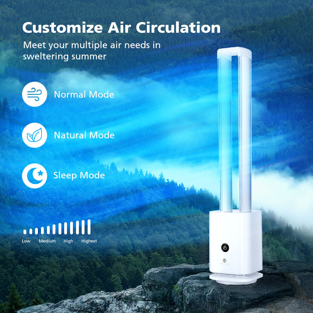 - AIR CIRCULATION FAN: ULTTY tower fan helps to circulate the air in your room and increase the airflow, which can help to decrease any respiratory issues you may be experiencing. Bladeless fans are easy to install and can help improve the quality of indoor air. ULTTY bladeless fans to consider installing to improve your sleep.