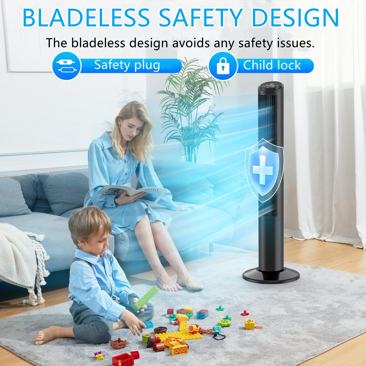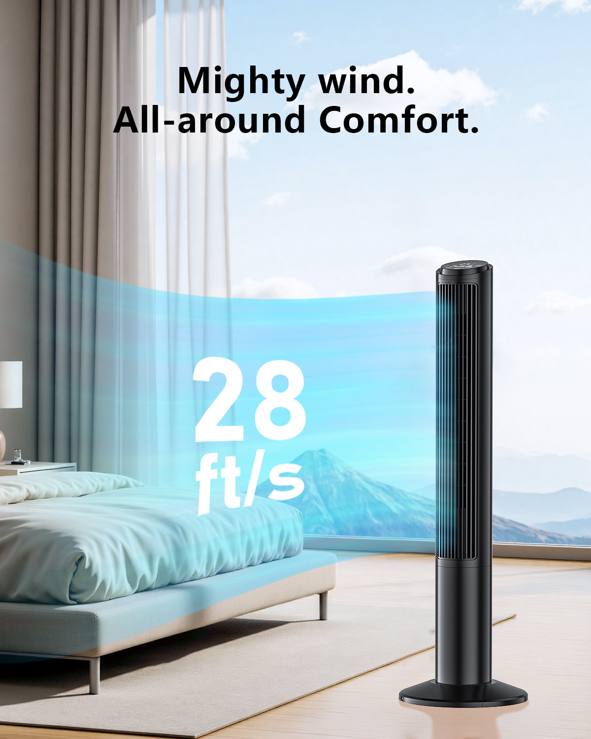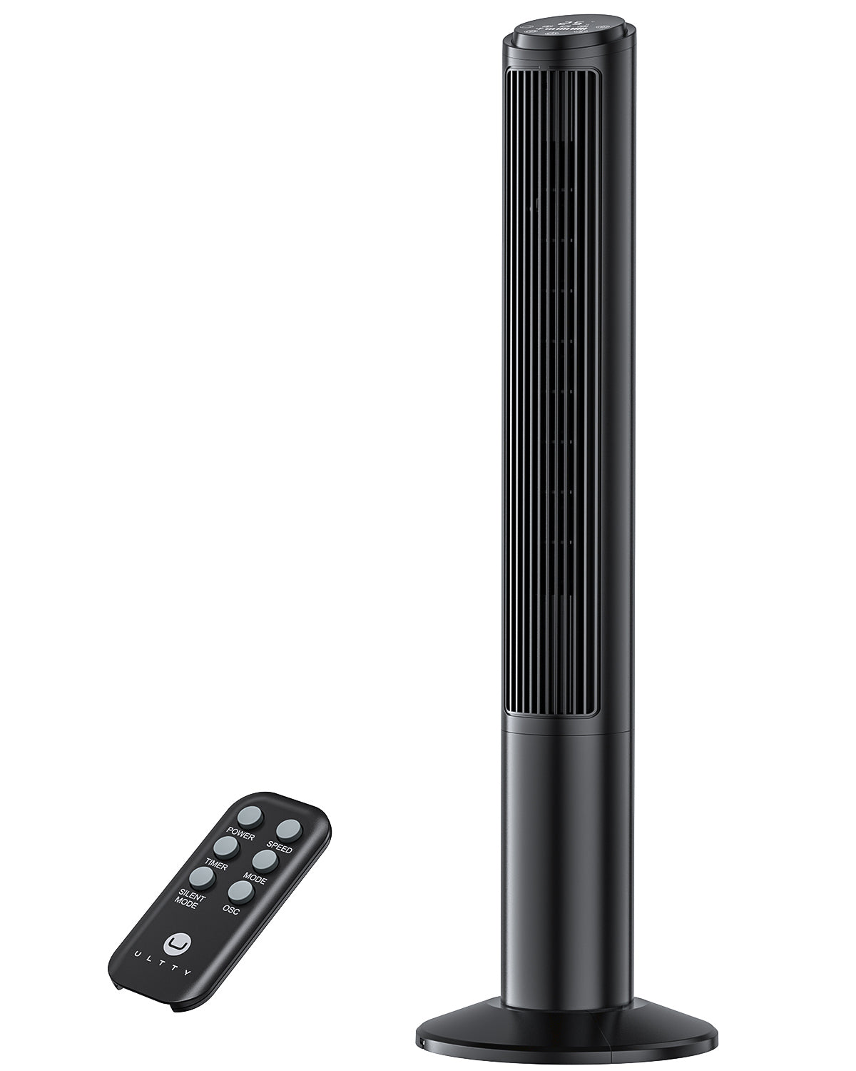 U ULTTY Tower Fan for Bedroom, Standing Fan that Blows Cold Air for Home, 28dB Quiet for Sleep, Remote, 70° Oscillation, 15H Timer, 25ft/s Velocity, 3 Speeds, 4 Modes, Bladeless 40 inch, Black