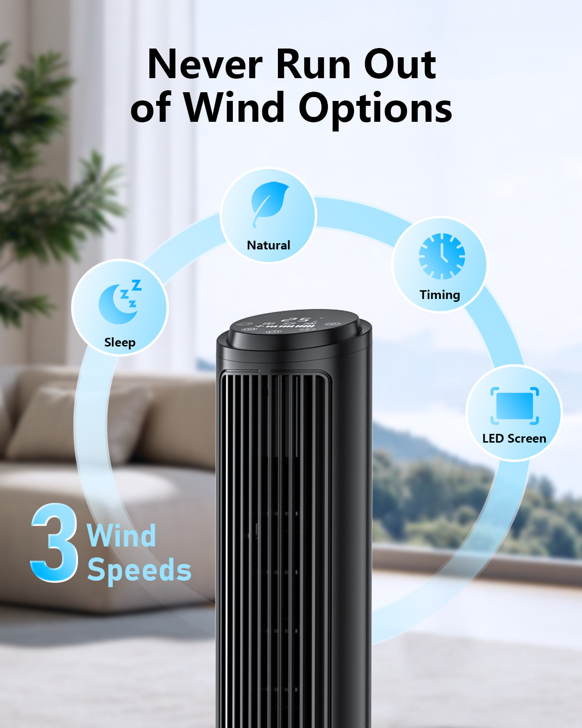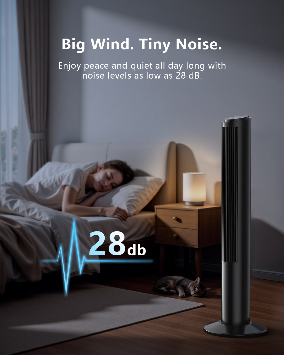 - Ultra-quiet design for better sleep: The noise level during operation is as low as 28 dB, this tower fan has 2 modes (natural wind/sleep wind). The display will be turned off after 8 seconds of turning on the sleep mode at night, and the wind speed will be automatically reduced, allowing you and your family to enjoy the coolness in silence and fall asleep peacefully