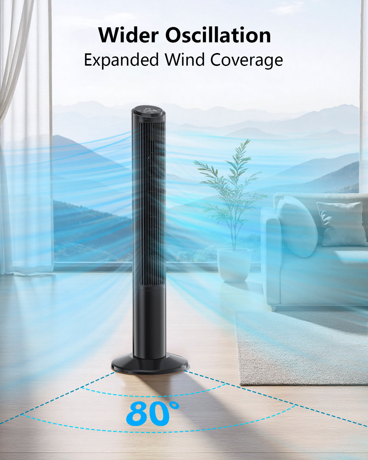 - Space-saving: 40" tower body cylindrical fan, 11.8" base is stable and does not take up space, suitable for small-sized bedrooms, study rooms or offices; hidden portable handle design, easy to move effortlessly