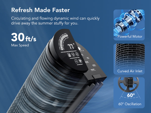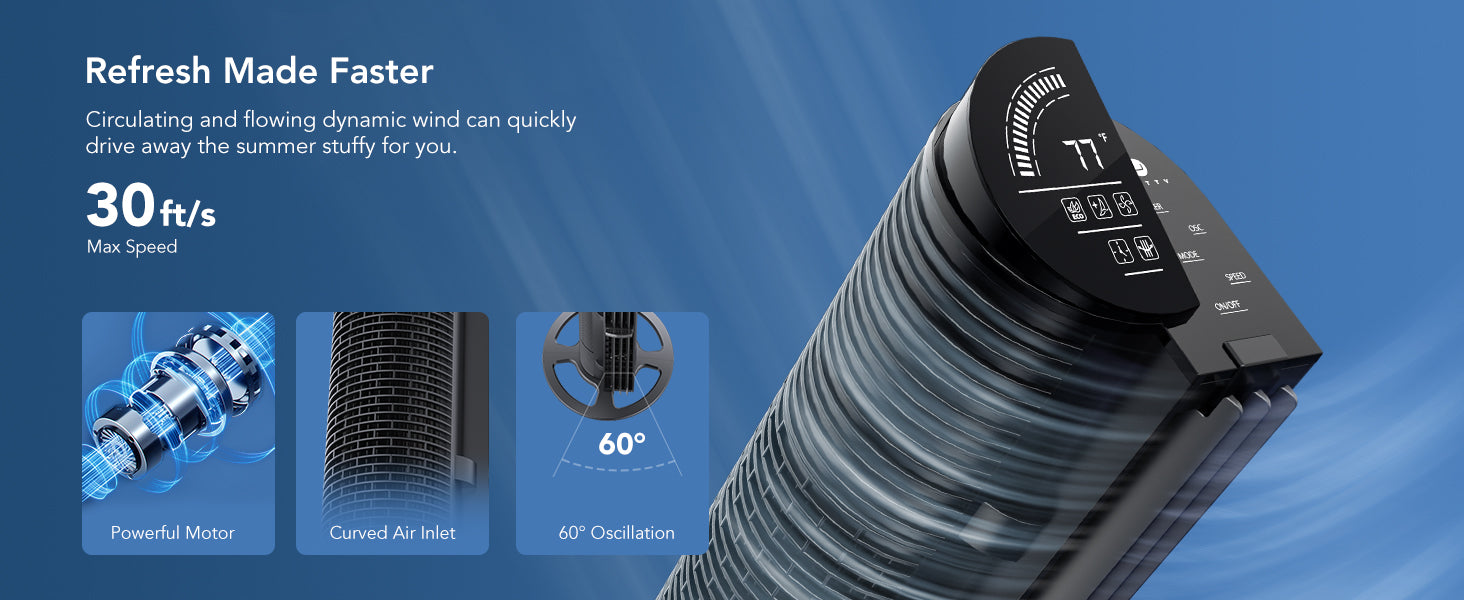 - Customizable Comfort: Featured with 4 modes (Normal/Natural/Sleep/Osc) and 6 speeds from soothing-soft to storm-strong, you can easily customize your comfort at the touch of a button, on the panel or the remote