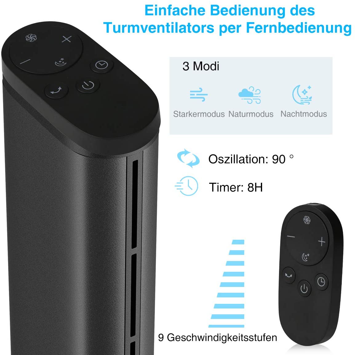 - Save space and energy: this tower fan is slim and compact, you can move this tower fan with just one hand. It takes up less space than conventional fans. The 26 W tower fan consumes only 0.7 degrees of electricity per day.